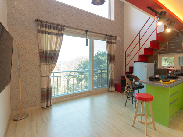 + 2층에 위치한 복층 구조의 객실이며 하늘창이 있어 밤하늘을 느낄 수 있습니다.